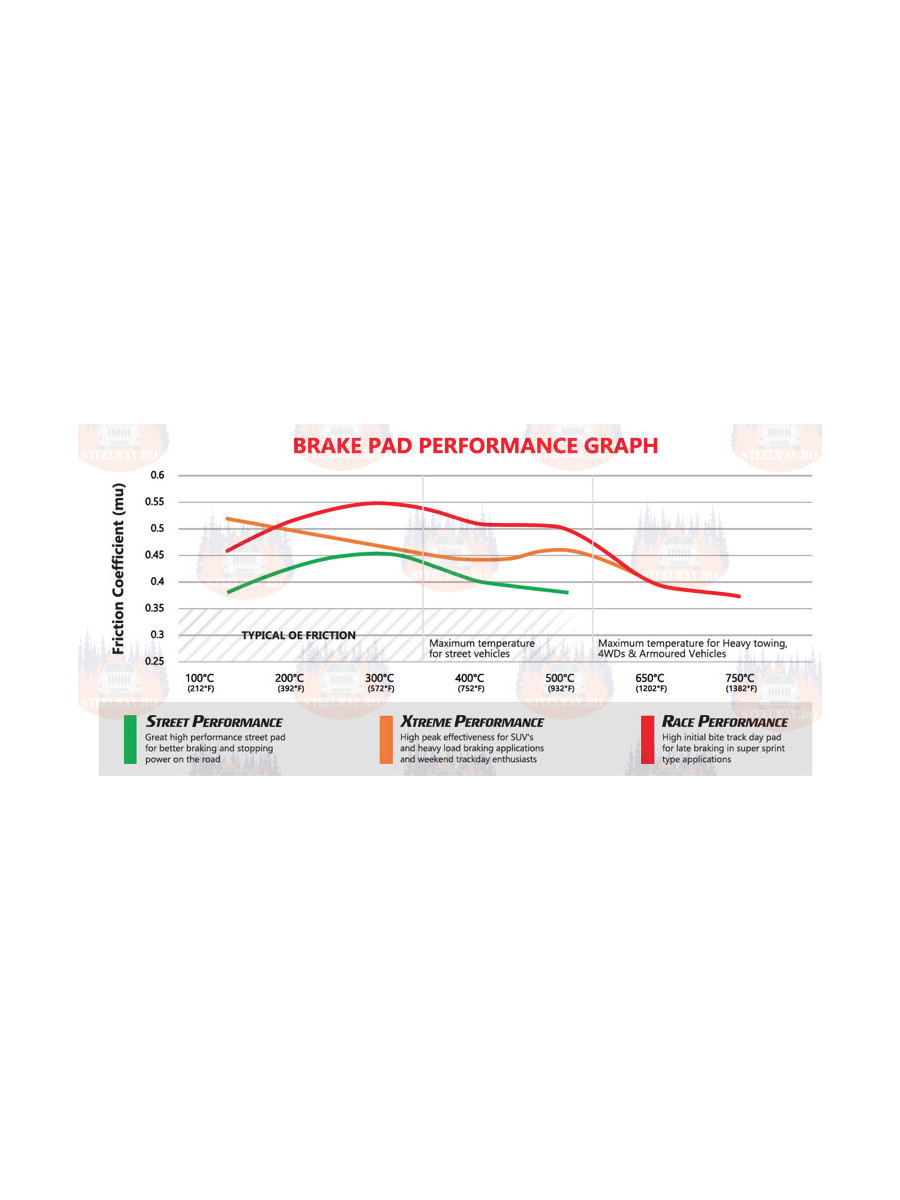 Clasa de frecare F-F (medie 0,35 mu de la temperaturi scăzute la temperaturi ridicate)