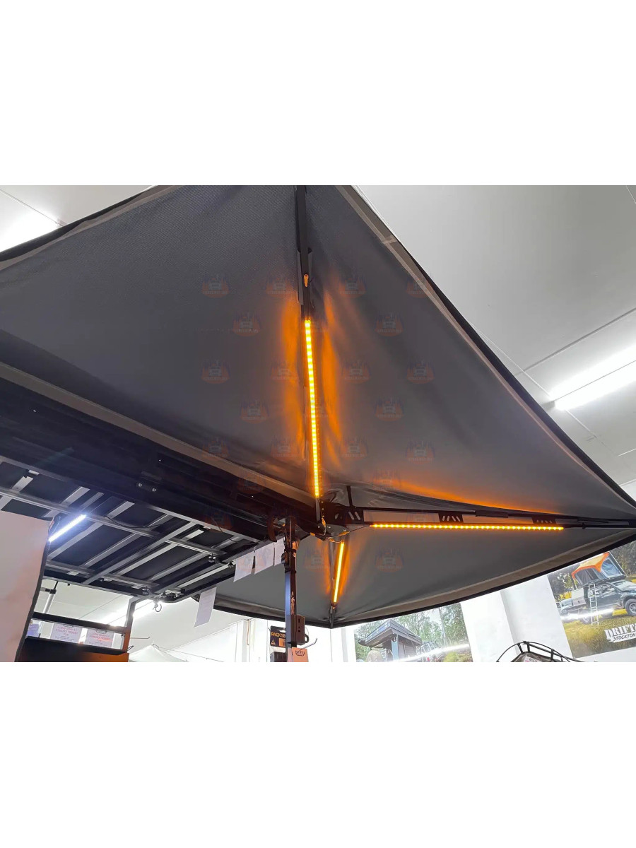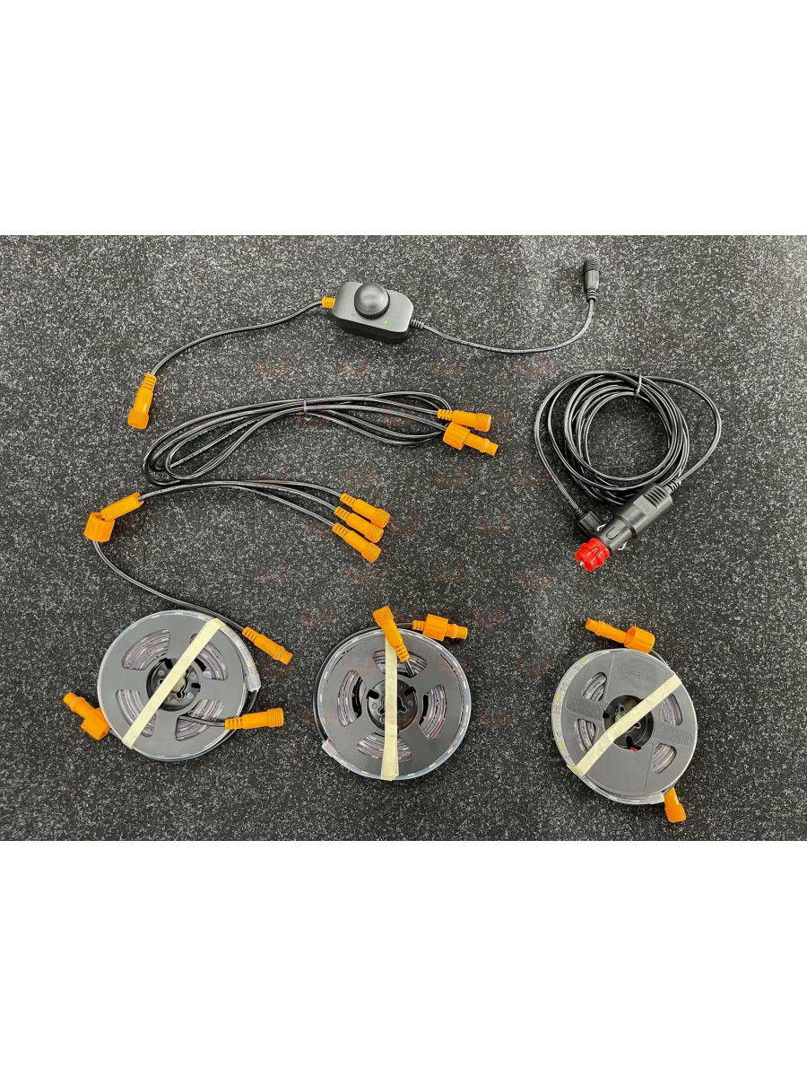 Acesta este un upgrade pentru copertinele Drifta Stockton. Acesta va funcționa bine și cu alte mărci. Benzile LED se lipesc pe barele copertinei. LED-ul poate fi alb strălucitor sau lumină chihlimbar. Dimmerul poate regla luminozitatea luminii și este, de asemenea, un comutator.