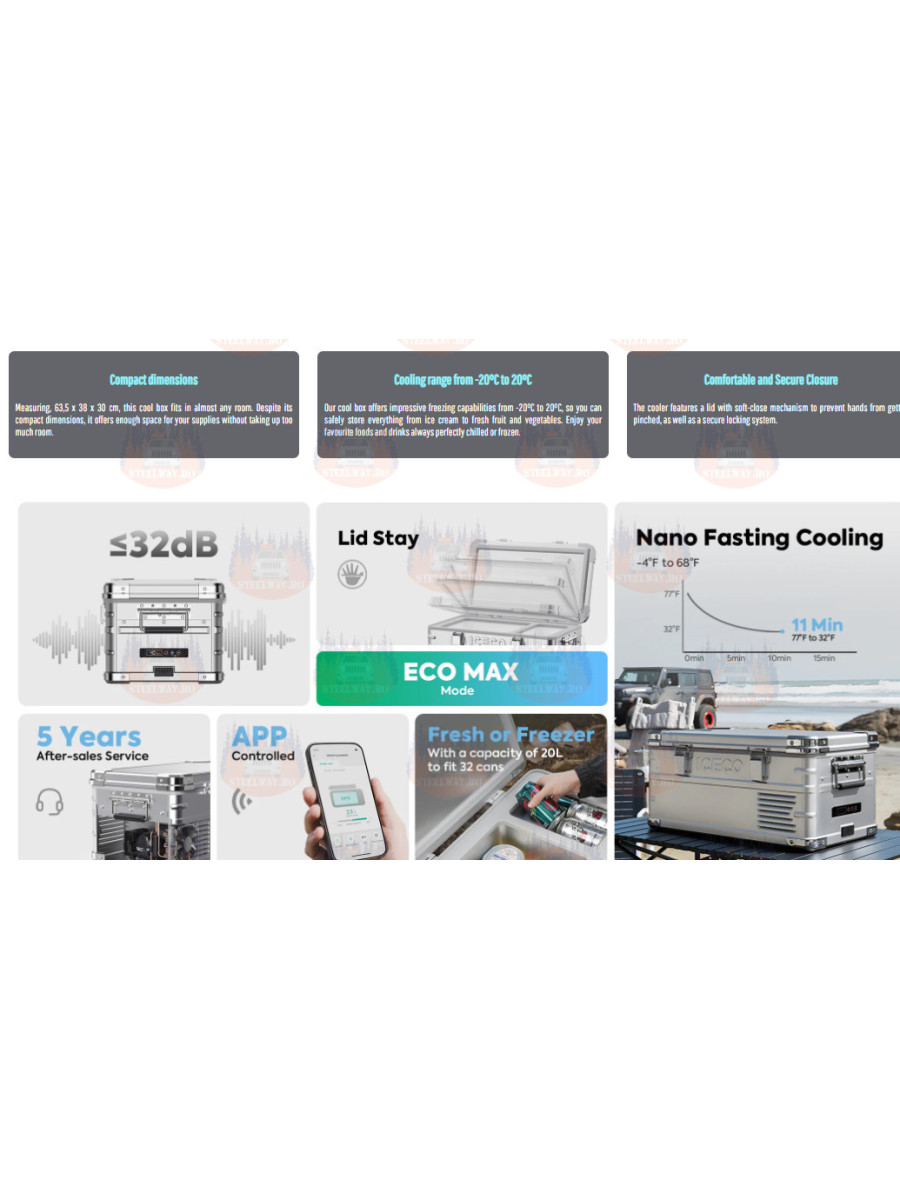 Experimentați o flexibilitate de neegalat cu răcitorul nostru modern - ideal pentru excursii cu cortul, drumeții sau utilizarea zilnică acasă. Capacitatea de congelare de la -20°C la 20°C vă menține proviziile perfect temperate. Datorită controlului prin aplicație, aveți întotdeauna toate valorile sub control. Balamalele amortizate ale ușii asigură o deschidere și o închidere silențioase. Cu dimensiuni compacte de 68,5 x 40 x 36,5 cm, răcitorul se potrivește în aproape orice cameră și oferă o capacitate de 35 de litri. Investiți în calitate și bucurați-vă de alimente și băuturi bine răcite.