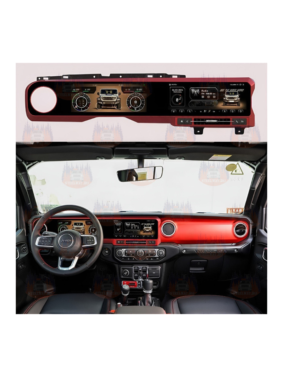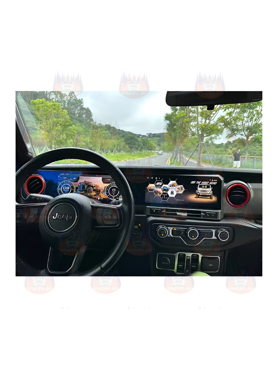 Cu ajutorul tabloului de bord digital și al ecranului multimedia, Jeep Wrangler JL 2018-2021 poate beneficia acum de o actualizare care combină tehnologia, caracterul practic și luxul. Proiectat pentru instalare din fabrică (plug & play), acesta înlocuiește complet tabloul de bord tradițional și oferă șoferului un panou de instrumente modern, cu un ecran HD de 12,3″, viteză în timp real, turație și informații despre vehicul. În același timp, acesta încorporează un sistem avansat de divertisment cu suport pentru CarPlay și Android Auto, Bluetooth, navigație GPS, radio și multiple opțiuni de conectivitate.