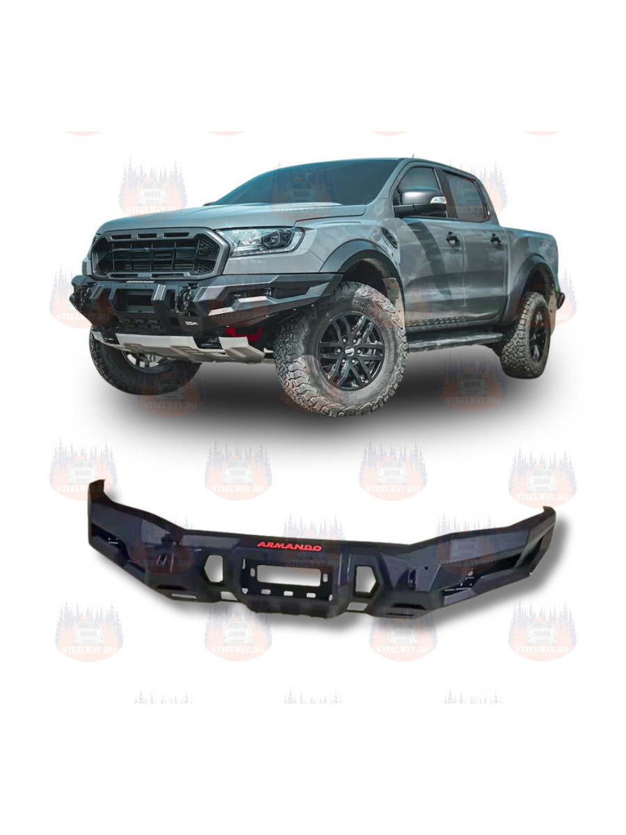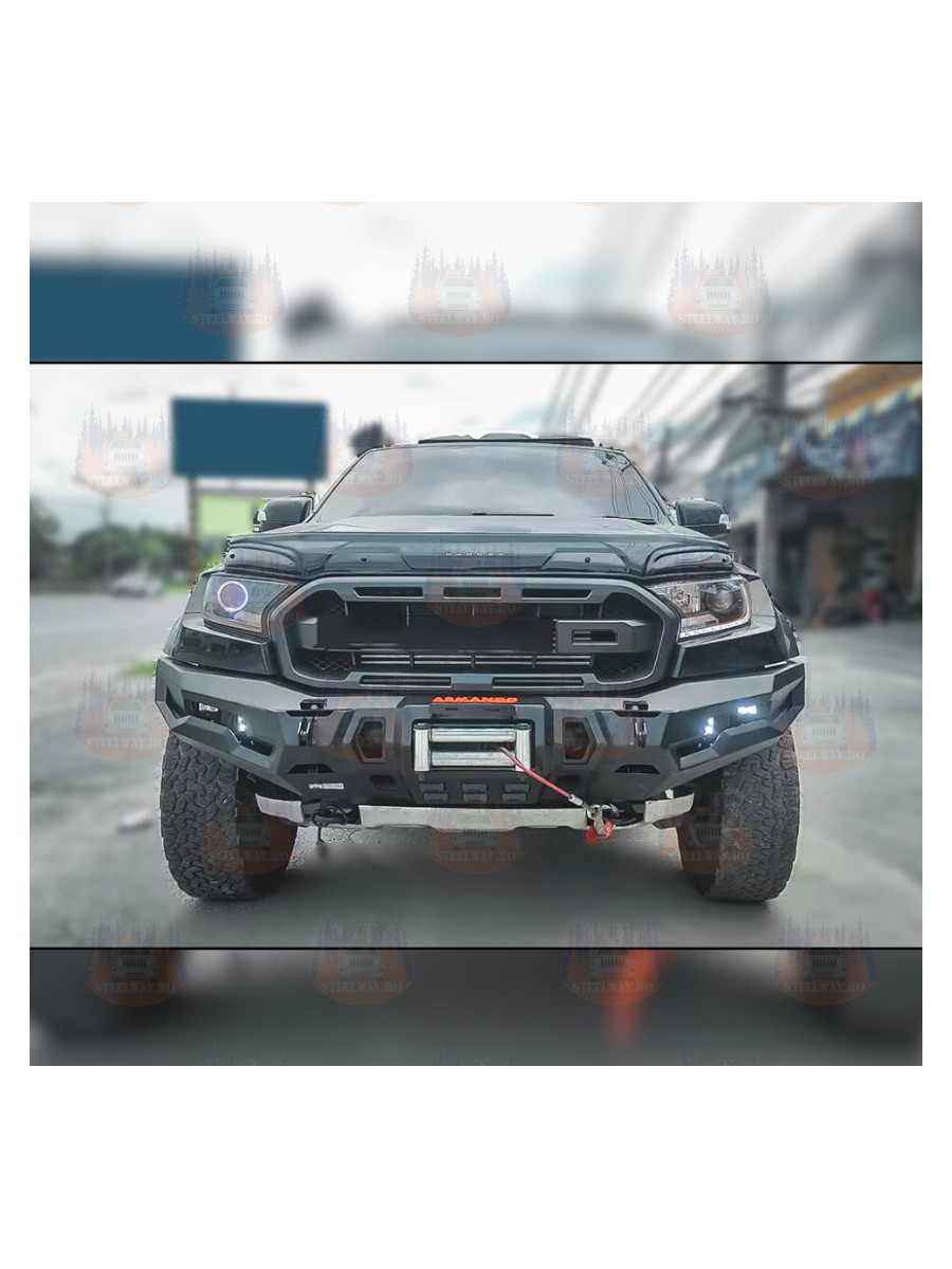 Bara de protecție față Hamer pentru Ford Ranger Raptor 2019–2022 este proiectată pentru durabilitate maximă, îmbunătățind atât siguranța, cât și aspectul impunător al vehiculului. Fabricată din oțel armat, oferă o protecție solidă împotriva impacturilor, coliziunilor și traseelor off-road solicitante. În același timp, finisajul negru adaugă o estetică subtilă, dar agresivă, armonizată cu designul din fabrică al vehiculului.