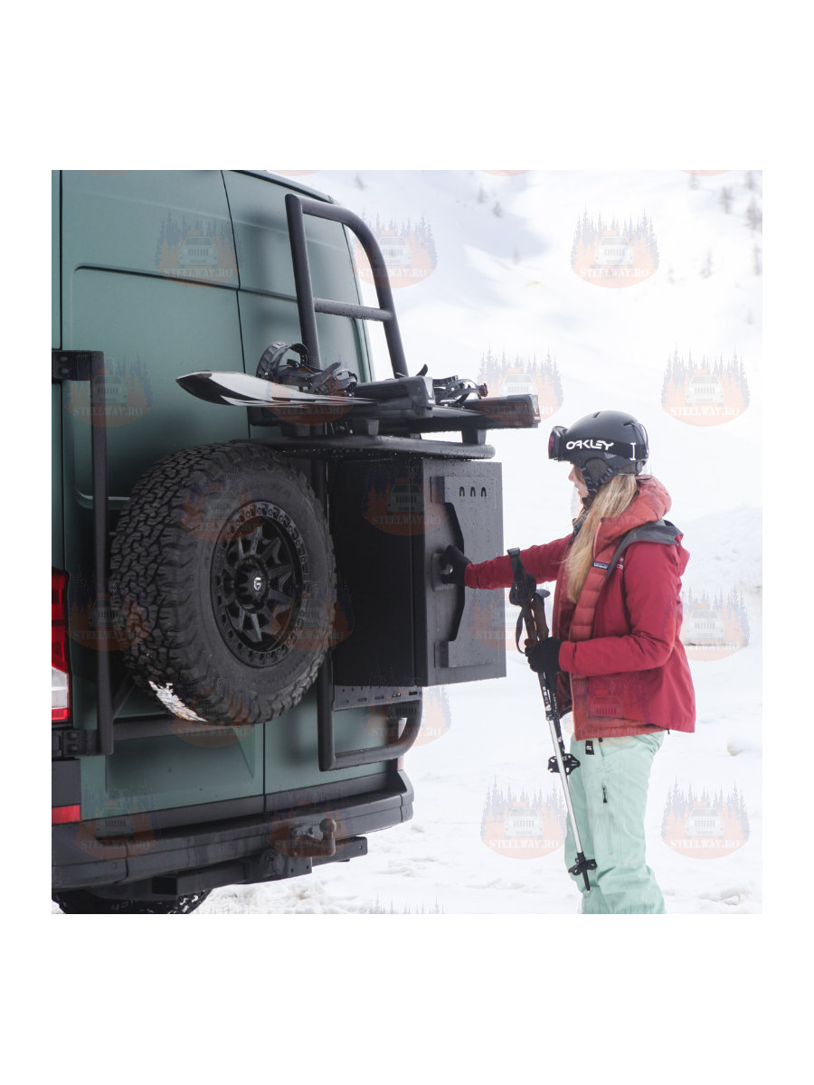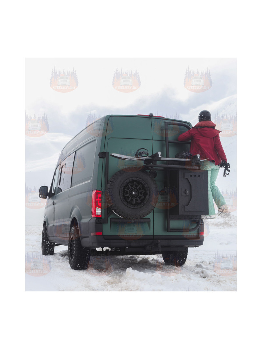 În plus, mutarea roții de rezervă eliberează spațiu prețios sub furgonetă pentru rezervoare de apă sau rezervoare auxiliare de combustibil. În situații off-road sau pe teren dificil, accesarea unei roți de rezervă montate sub furgonetă poate fi dificilă. Montarea acesteia pe un suport pentru roți o face mult mai accesibilă atunci când aveți cea mai mare nevoie de ea.