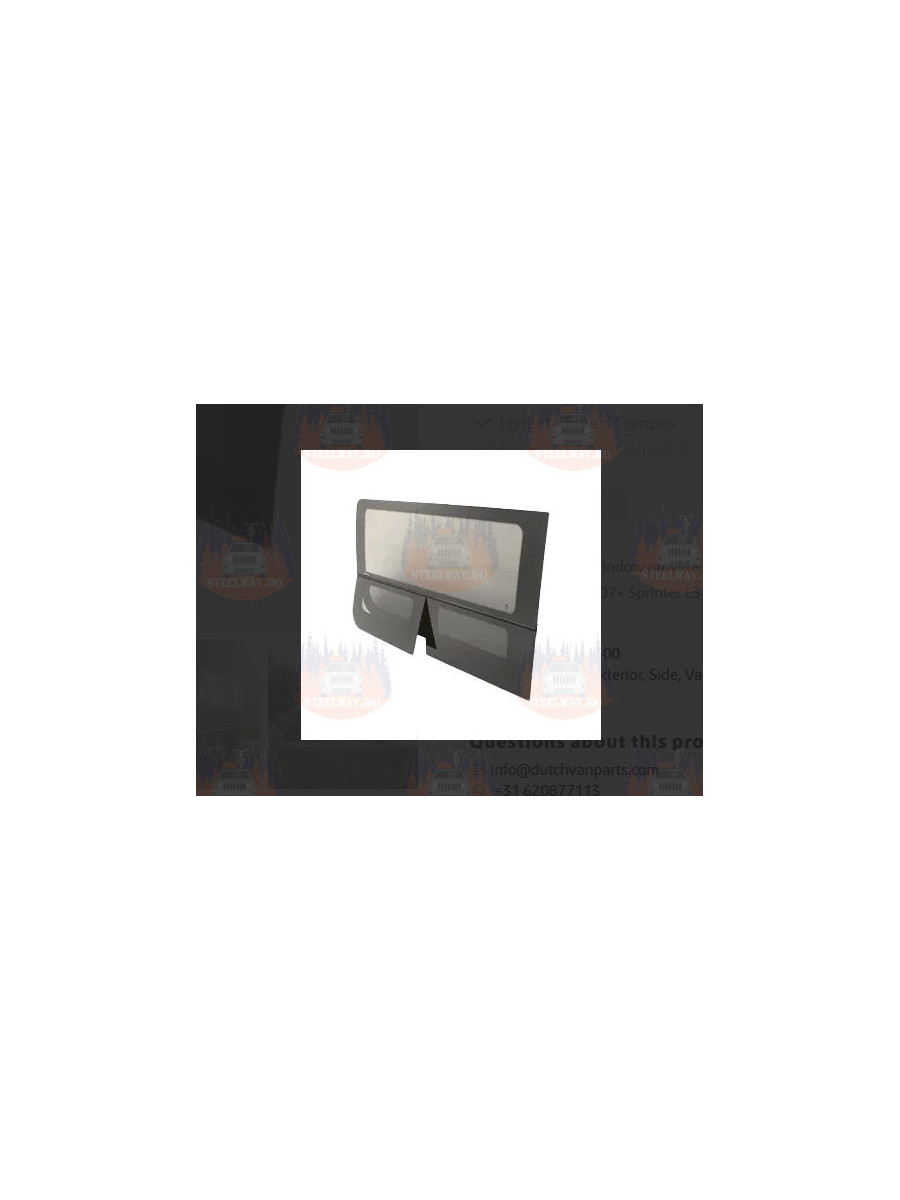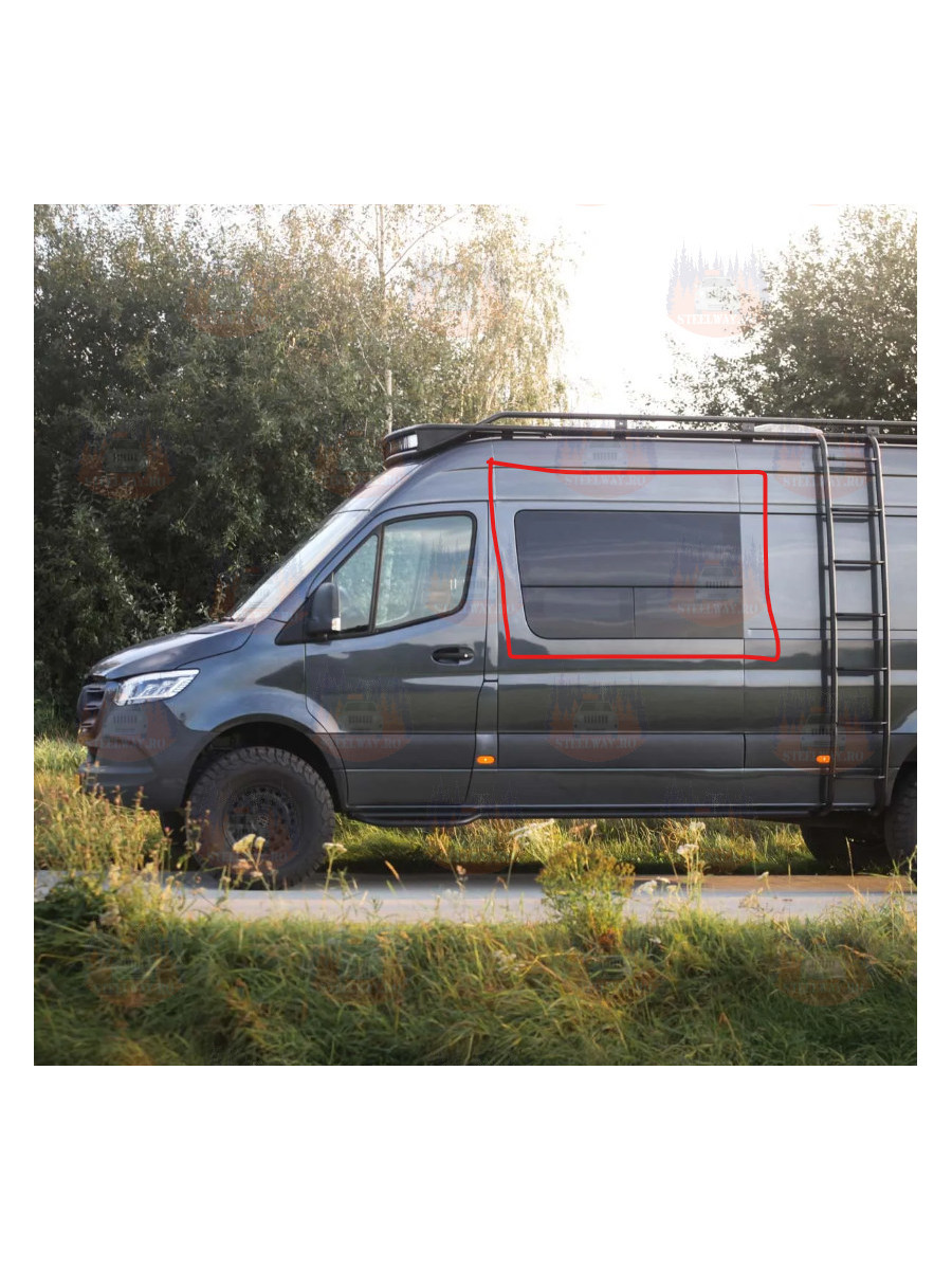 Acest model este compatibil cu autoutilitarele Mercedes Sprinter din 2007+: ampatament L3 (144„) și L4 (170”), acoperiș înalt și jos. Construcția din sticlă securizată asigură rezistență și siguranță, iar conformitatea cu standardele de siguranță ANSI Z26.1 și FMVSS 205 oferă liniște sufletească.