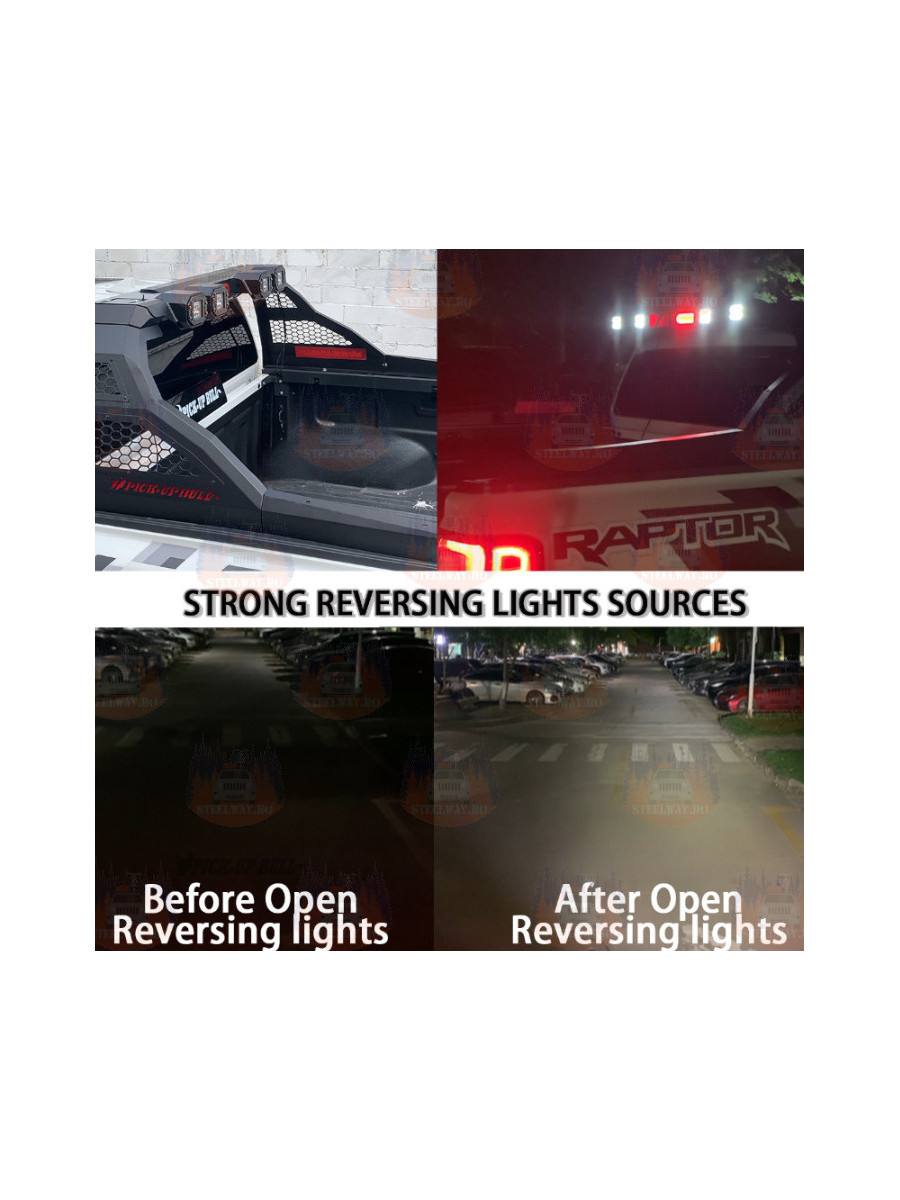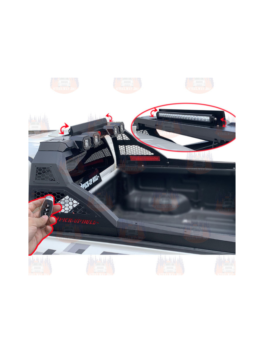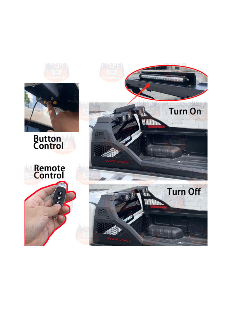 Bara universală de protecție off-road cu bară de acoperiș LED Starstuck este upgrade-ul suprem pentru orice pick-up 4×4, combinând designul agresiv, protecția și funcționalitatea. Construită din oțel rezistent și durabil, cu finisaj negru acoperit cu pulbere, aceasta oferă o rezistență sporită, precum și un aspect premium, în timp ce bara de acoperiș LED integrată cu control dublu (telecomandă și comutator) oferă iluminare puternică pentru condusul pe timp de noapte, mersul în marșarier sau aventurile off-road, făcând vehiculul dvs. mai sigur și mai impresionant.