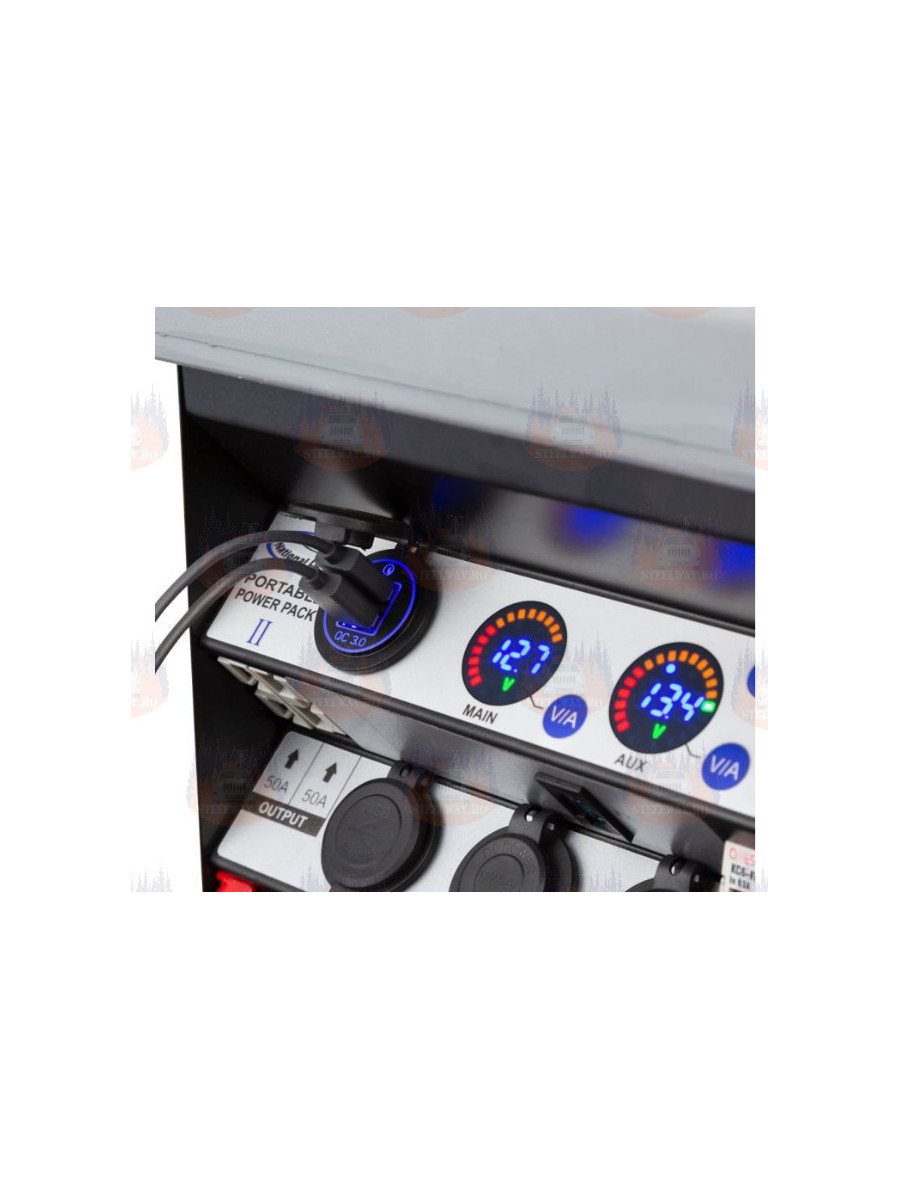 Power Pack 2 suportă o varietate de opțiuni de ieșire de putere, inclusiv prize standard pentru brichete, conectori de tip Hella, porturi USB de încărcare și prize robuste Anderson de 50A.