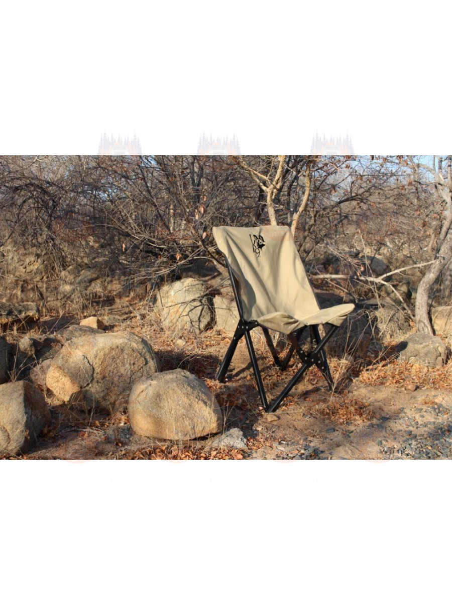 K9 Camping Fold-a-Chair are un cadru durabil din aluminiu vopsit cu pulbere neagră, combinat cu un mecanism robust de foarfecă din oțel inoxidabil pentru stabilitate sporită.