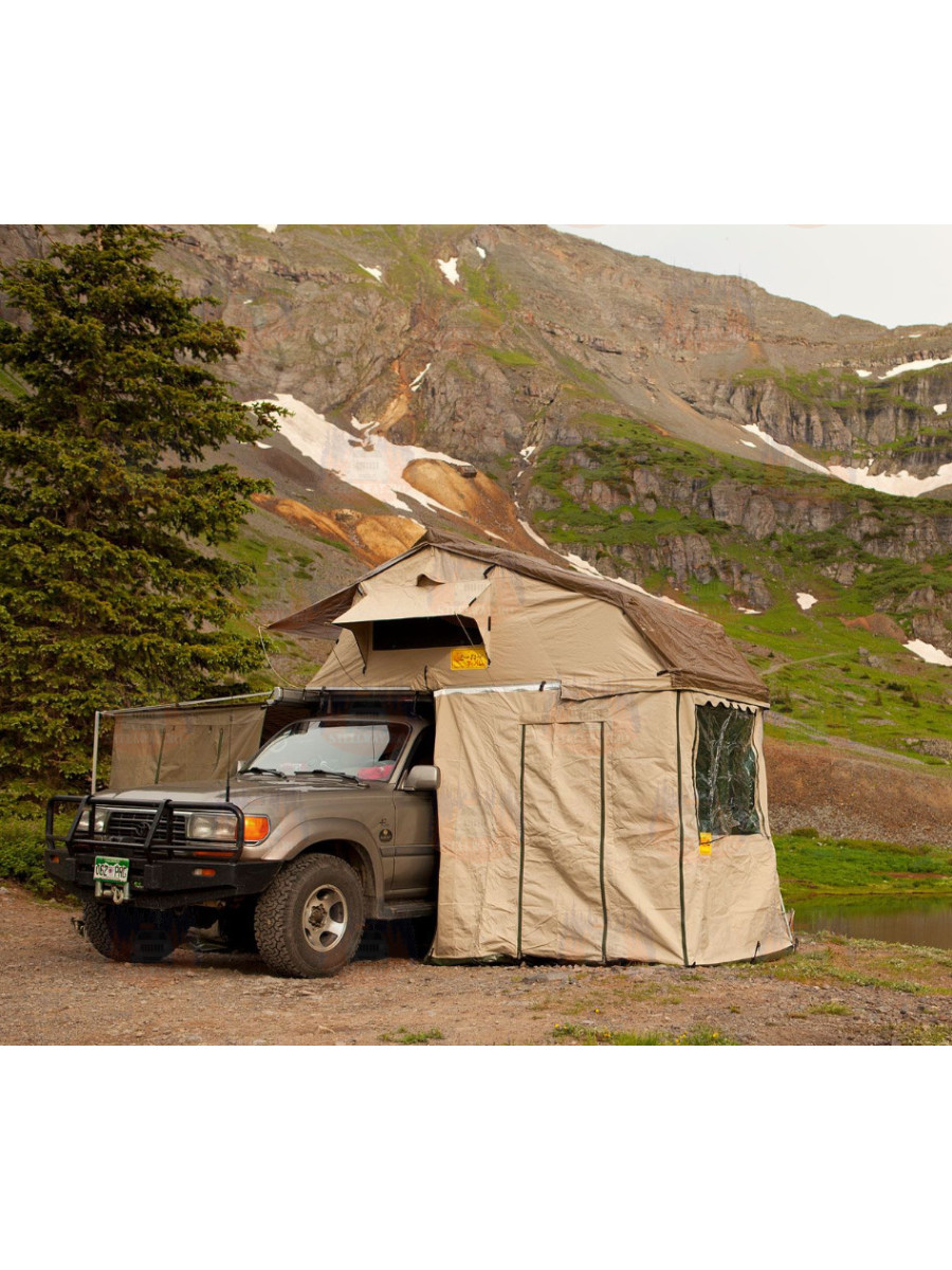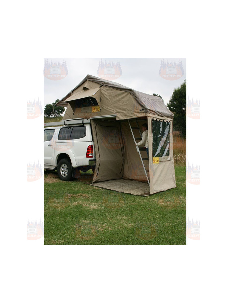 Cortul Eezi-Awn T-Top Xklusiv este un cort clasic, dar practic, cu acoperiș softshell, disponibil în diferite dimensiuni. Acest cort are o lungime de 2 metri și aceeași lățime ca cortul, precum și o scară cu extensie integrată pentru o lungime maximă de 235 cm. Acest cort de acoperiș excelează prin utilizarea unei pânză ripstop rezistentă, cu două cusături duble, de 360 g/m2, și o construcție simplă, dar robustă.