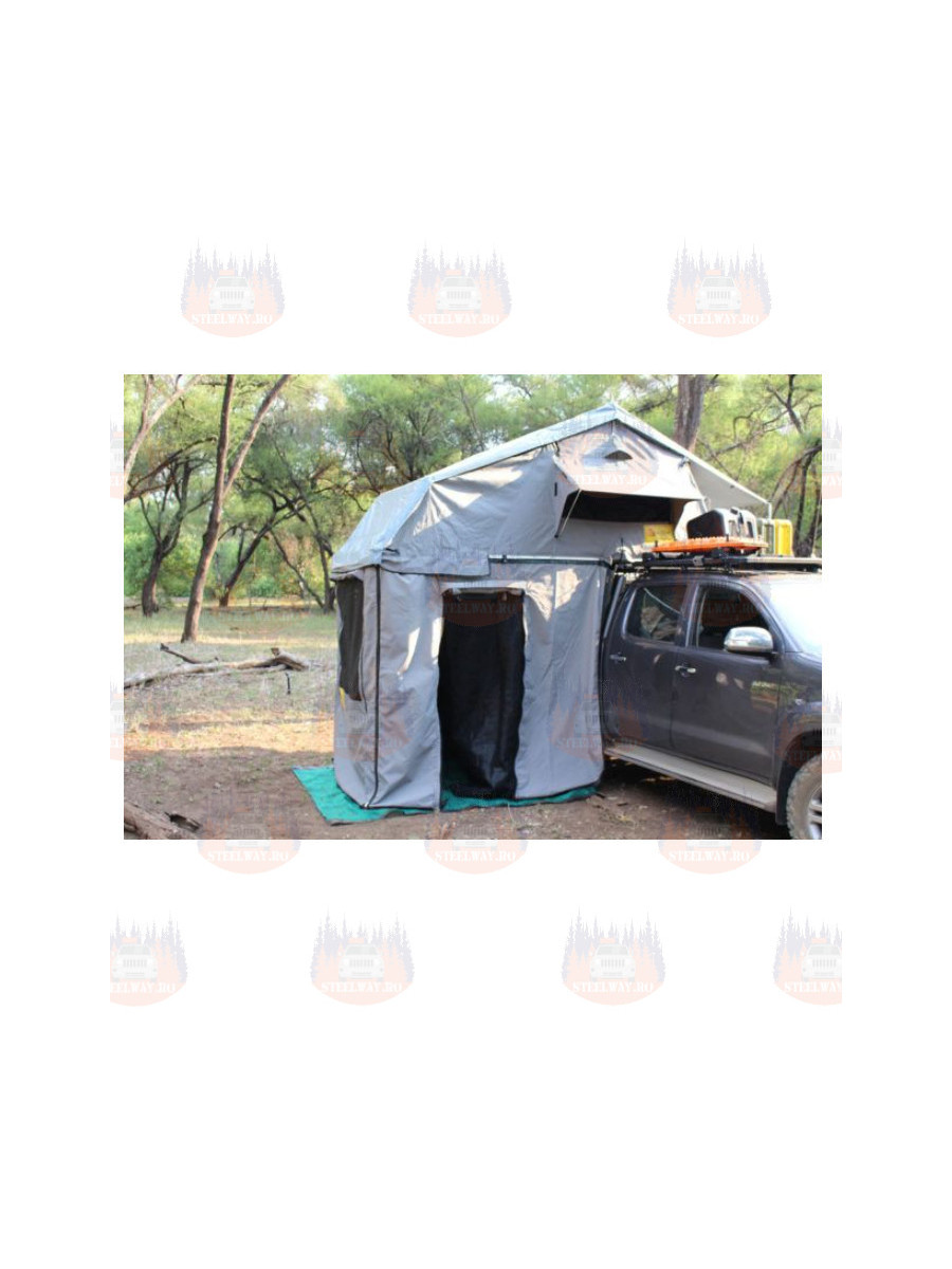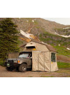 Acest cort de pe acoperiș poate fi montat în câteva minute. Pur și simplu îndepărtează husa de protecție, desfaci scara și folosește-o pentru a desface cortul. Extinde cadrul de aluminiu pentru a extinde cortul și a crea spațiu pentru intrarea acoperită și cortul inferior. Reglează scara la înălțimea corectă și folosește stâlpii oferiți pentru a încorda cearșașul, iar cortul este gata de dormit. Dacă se dorește, cortul de dedesubt poate fi atașat pentru a crea mai mult adăpost și intimitate.
