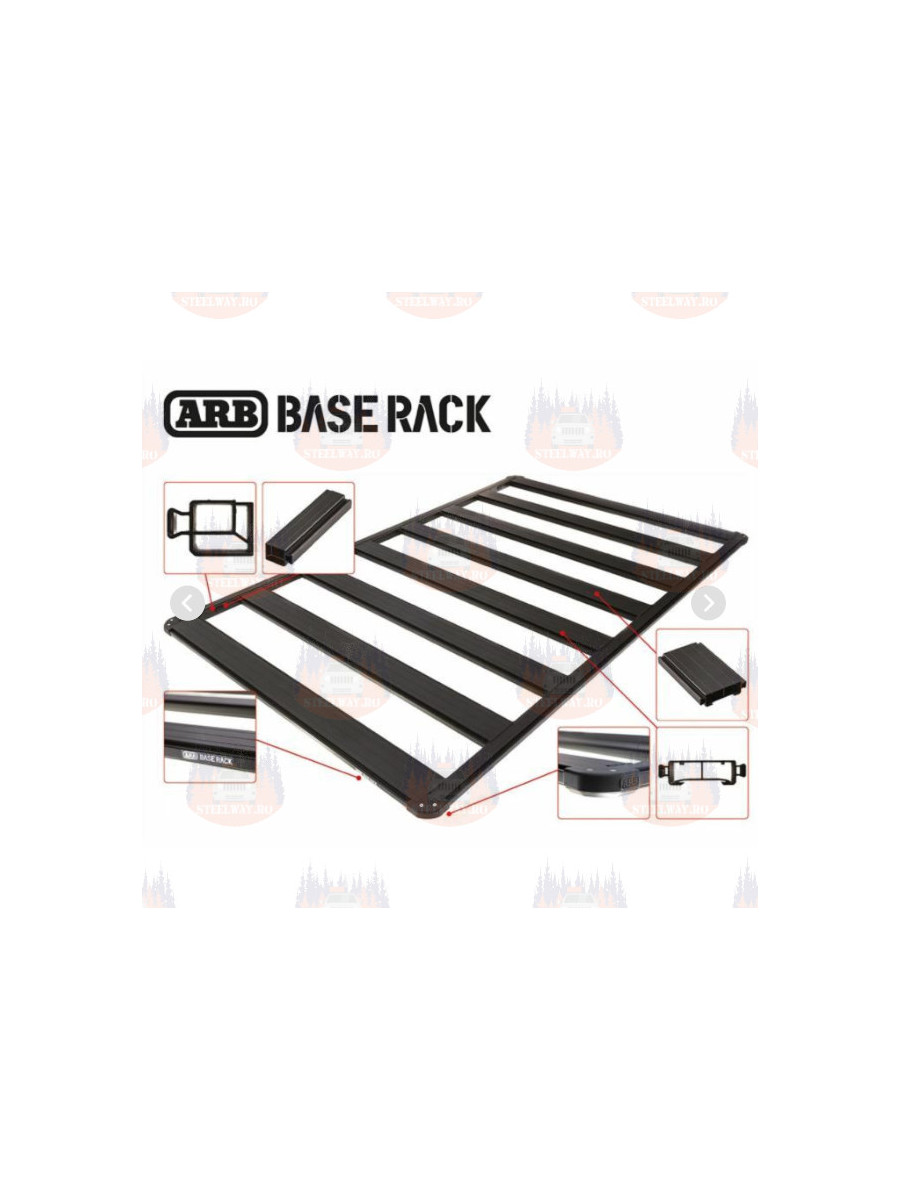 Noul suport de acoperiș ARB este vândut ca un suport plat și poate fi transformat cu ușurință într-un suport de acoperiș tradițional (cu coș perimetral) care acoperă 100% din suportul de acoperiș sau, pur și simplu, putem încorpora secțiuni de balustradă în funcție de încărcătură. Sistemul de șine BASE Rack este disponibil pentru a acoperi întregul cadru, 3/4, 1/4 sau doar părțile laterale. Șinele se atașează rapid și ușor la profilul existent în jurul cadrului.