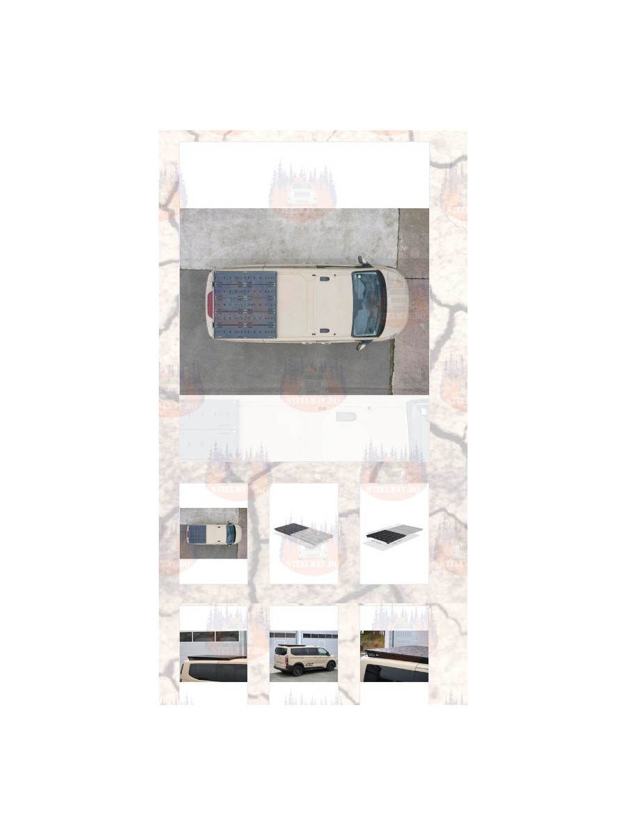 Monturi specifice vehiculului și toate șuruburile și piulițele fanteate din oțel inoxidabil. Bare transversale și plăci de module realizate din aluminiu de înaltă rezistență.