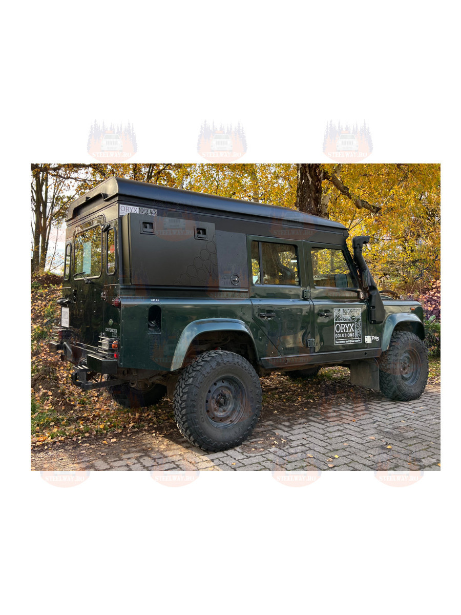 De exemplu, cu această cutie de depozitare exterioară, zona ferestrelor laterale din spate poate fi folosită pentru a crea spațiu suplimentar de depozitare. Cutia este ideală și ca bucătărie exterioară, deoarece capacul, fixat cu cabluri de oțel, poate fi folosit și ca suprafață de lucru.