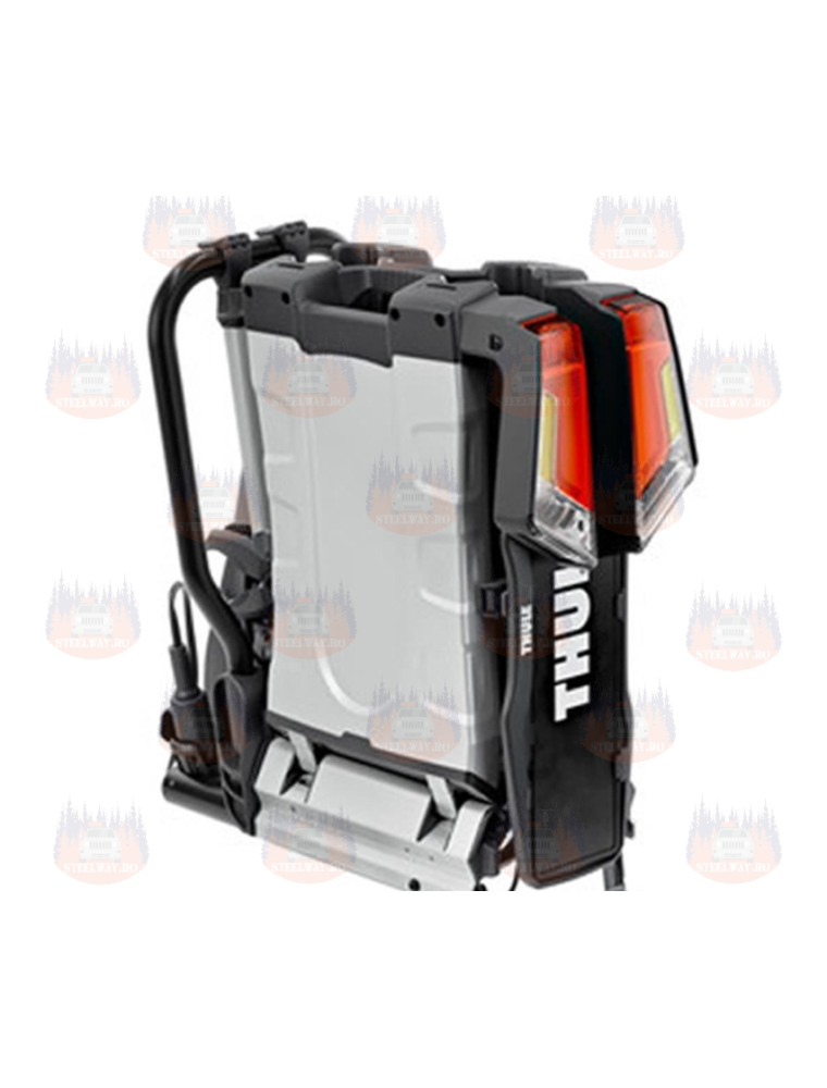 Lampile spate ce echipeaza Thule Easy Fold au un design avangardist si beneficiaza de tehnologia "light guide". La confectionarea suportului s-au folosit materiale plastice de ultima generatie si aliajul de aluminiu, pentru ca masa proprie a acestuia sa fie cat mai scazuta.
