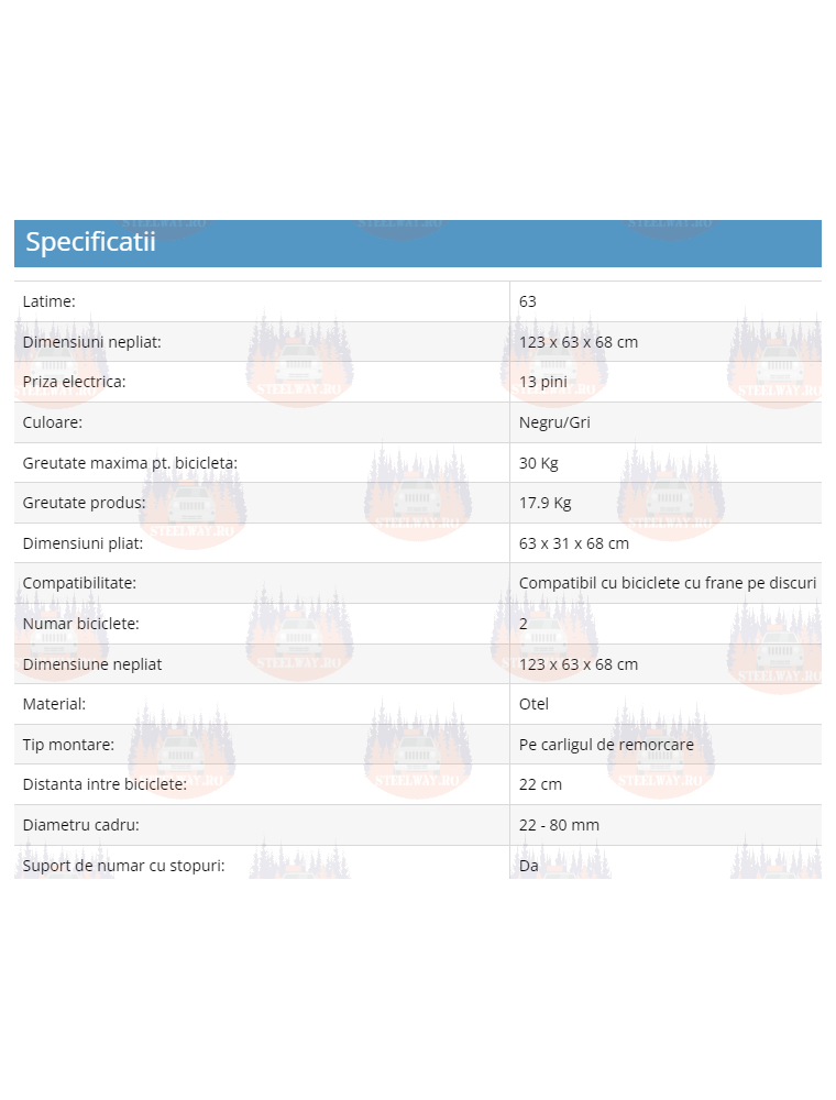 Acest suport poate transporta orice tip de biciclete, inclusiv robustele mountain bike si chiar cele electrice, a caror masa proprie nu depaseste
