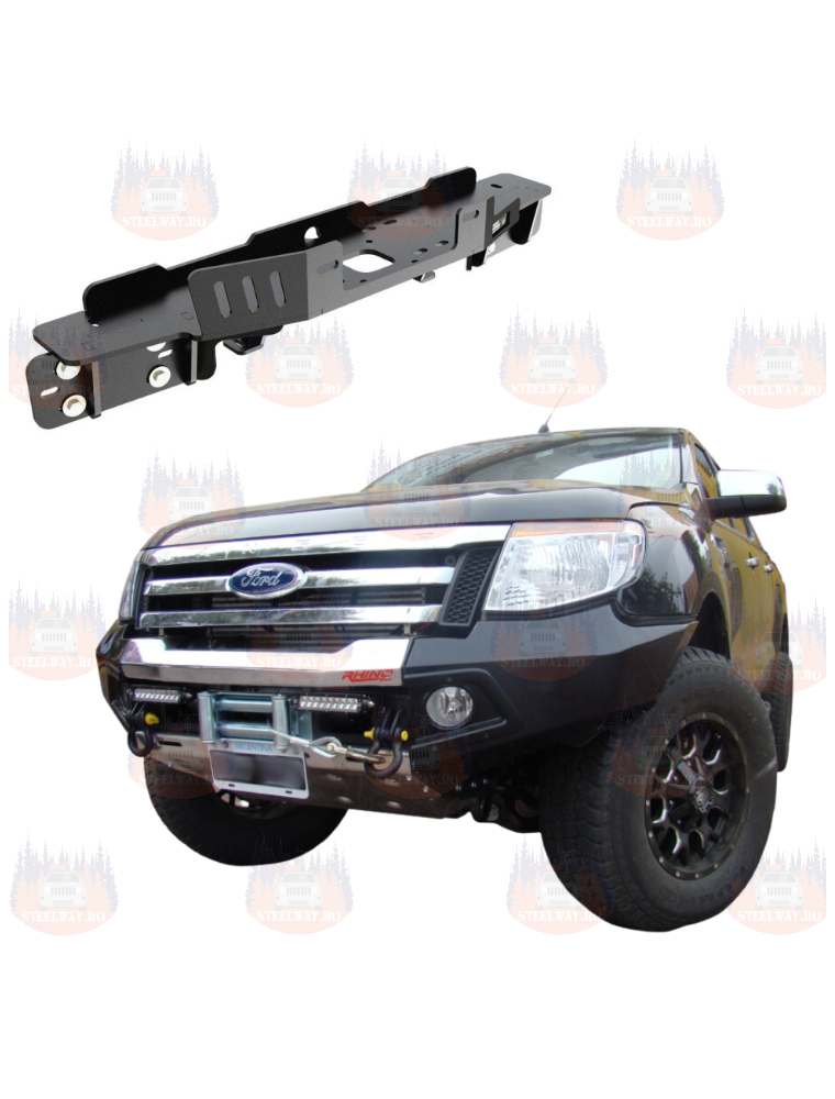 Placa de montare a troliului proiectată și destinată pentru Ford Ranger T6. Element absolut esențial pentru instalarea troliului în mașină. Permite o montare subtilă a troliului în spatele barei de protecție a mașinii.