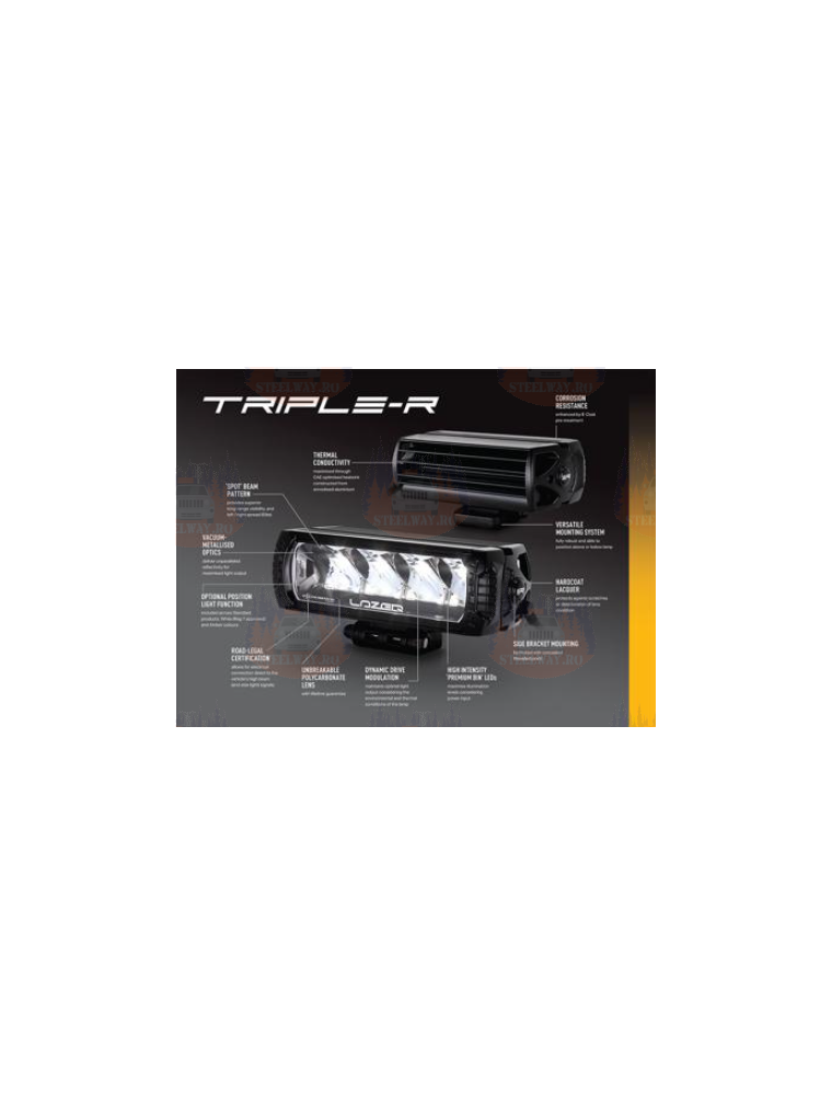 Set complet cu kit de montare a grilei și două faruri LED Triple-R 750 standard/Elite. Pentru cablare ușoară, setul de cabluri LL-2L-LP-120 (conector automat, de lipit) este, de asemenea, inclus în domeniul de livrare.