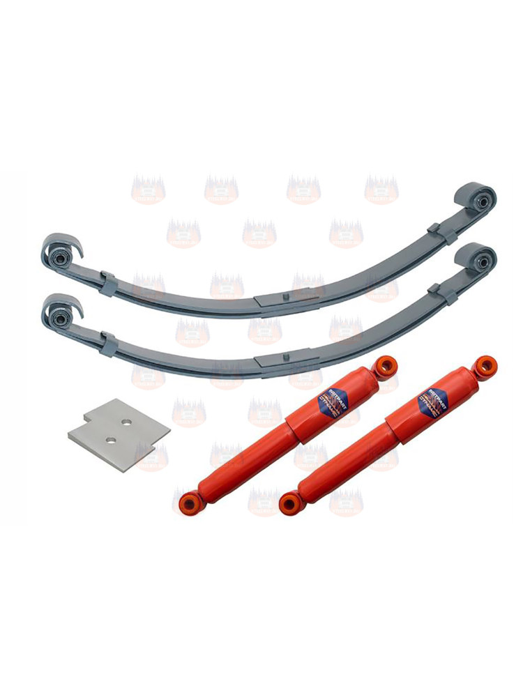 Arcurile parabolice OEM de înaltă calitate sunt cuplate cu amortizoare Cellular Dynamic. De asemenea, în kit sunt incluse și pene de corecție a arcurilor cu foi, care pot fi utilizate pentru a corecta unghiul de rotire sau unghiul de bolț al diferențialului cu 3 grade. Arcurile parabolice includ șuruburi U și piulițe.