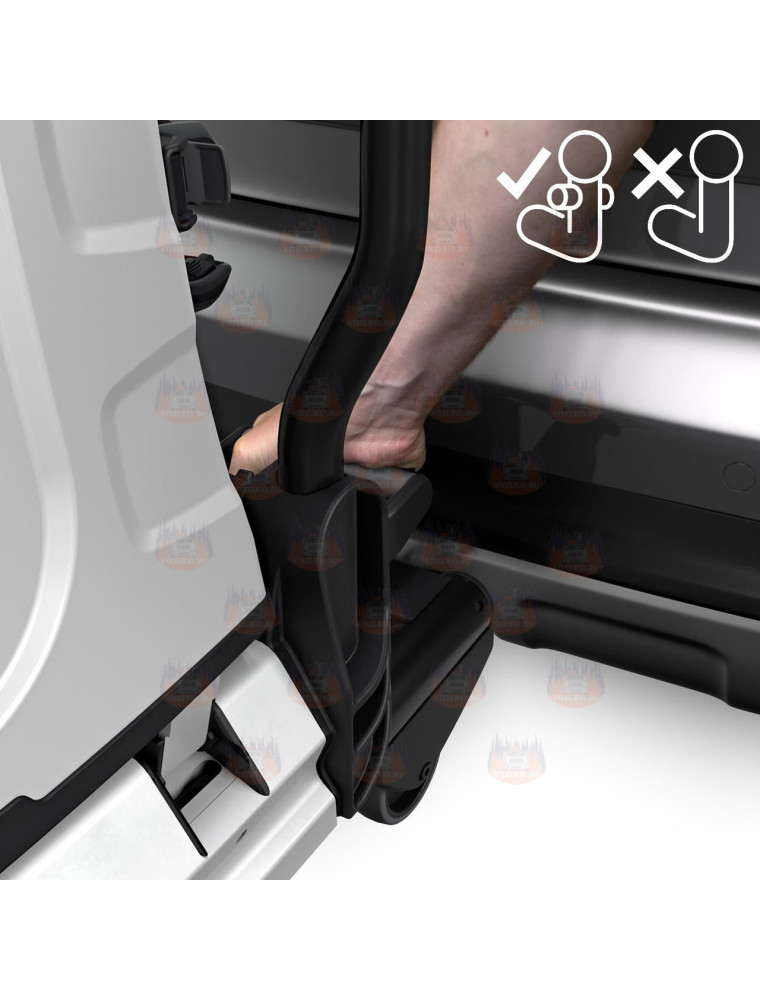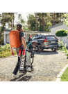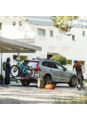 • Sistemul de rabatare a suportului, prin apasarea unei pedale, permite accesarea fara probleme a portbagajului, chiar si cu bicicletele montate.