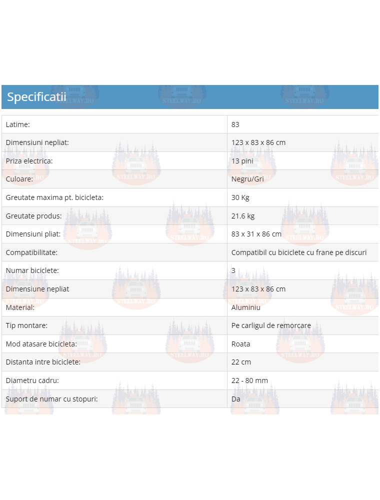 • Capacitate sporita de incarcare permitand transportul de biciclete electrice si biciclete de munte grele.